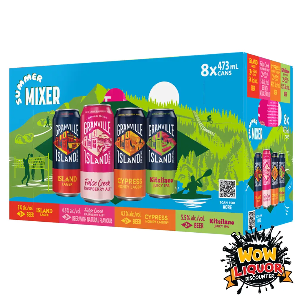Dive into summer with the Granville Island Summer Mixer 8 Pack, a vibrant collection of craft beers from one of Canada’s most iconic breweries. Brewed in Vancouver, BC, this limited-edition pack features four distinct 473mL tall cans, each showcasing Granville Island Brewing’s dedication to bold flavors and quality ingredients. Perfect for sunny patios, beach days, or backyard BBQs, this mixer brings together a quartet of refreshing beers designed to elevate every moment.