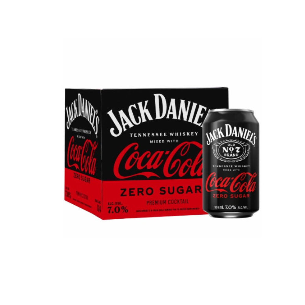 A pre-mixed cocktail pack combining Jack Daniels and Coke Zero Sugar.