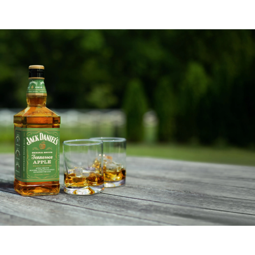 A 750ml bottle of Jack Daniels Tennessee Apple, featuring a blend of Jack Daniels whiskey with apple liqueur.