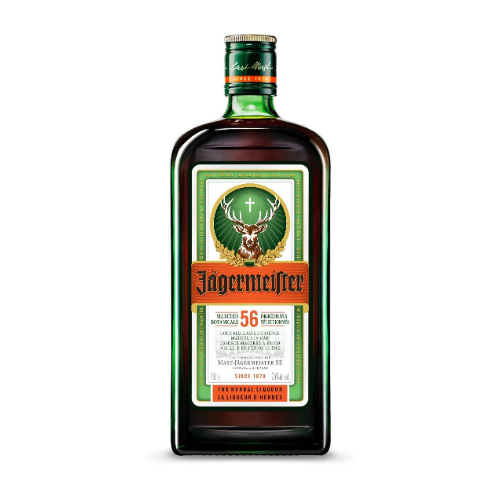 A 750ml bottle of Jägermeister Herbal Liqueur, featuring a bold and complex herbal liqueur profile.