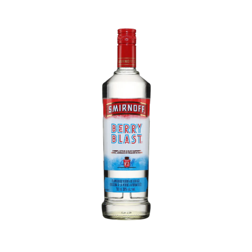 A 750ml bottle of Smirnoff Berry Blast, known for its sweet and fruity vodka profile with berry flavors.