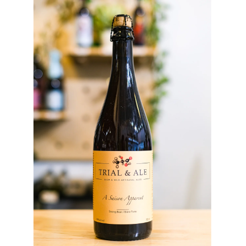 A 750ml bottle of Trial & Ale Saison Apparent Gose, known for its tart and refreshing gose profile.